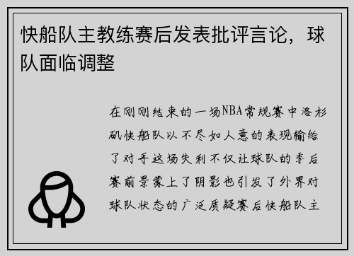 本文将对快船与猛龙之间的季前赛进行详细回顾与分析,重点聚焦于比赛过程中的精彩瞬间以及赛后的亮点总结。文章将从比赛的整体表现、关键球员的发挥、战术策略的运用以及未来展望四个方面进行深入探讨。通过视频回顾,我们不仅能够感受到场上激烈的竞争氛围,还能理解两队在新赛季开局前所展示出的潜力和不足之处。最终,本...